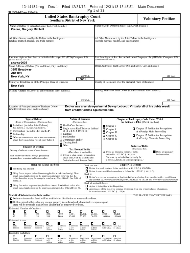 A version of this article appears in print on January 25, 2014, on page B1 of the New York edition with the headline: A Lawyer and Partner, and Also Bankrupt.